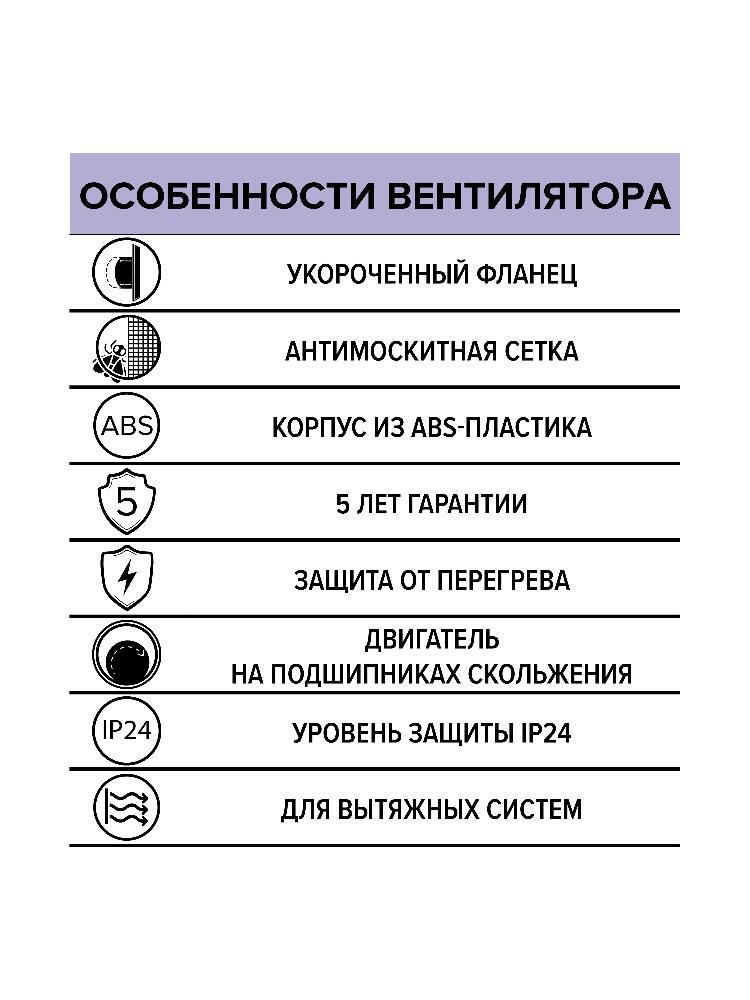 Долговечный двигатель с предохранителем гарантирует до 30 000 часов непрерывной работы, предохранитель отключит вентилятор при нагреве обмотки свыше +130 °C.